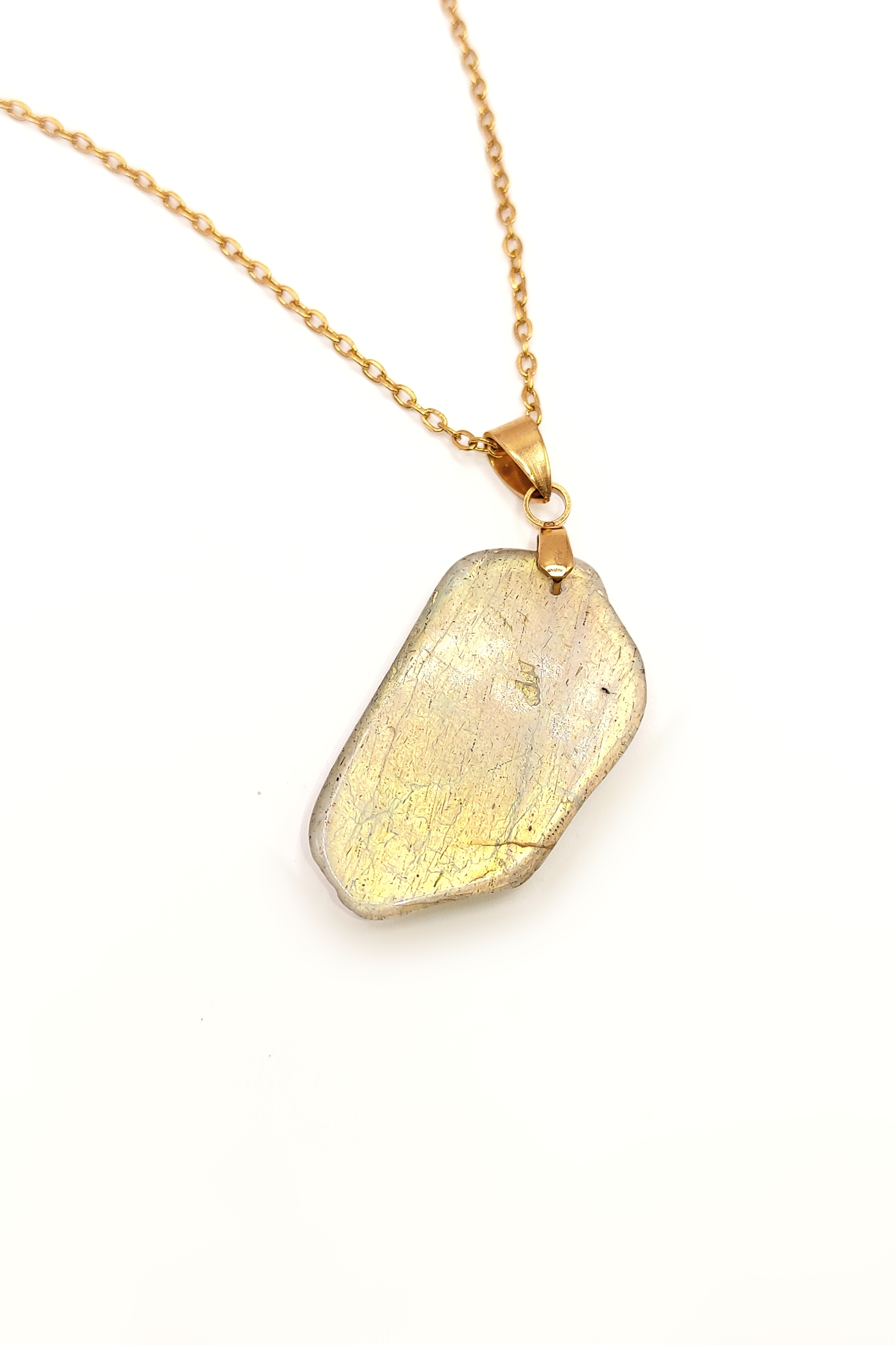 گردنبند لابرادوریت طلایی طبیعی کمیاب ✨