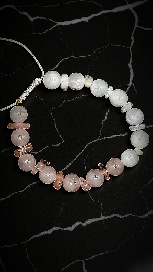 دستبند آمیتیست رزکوارتز تمام قلبی