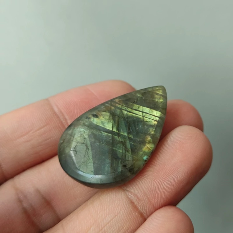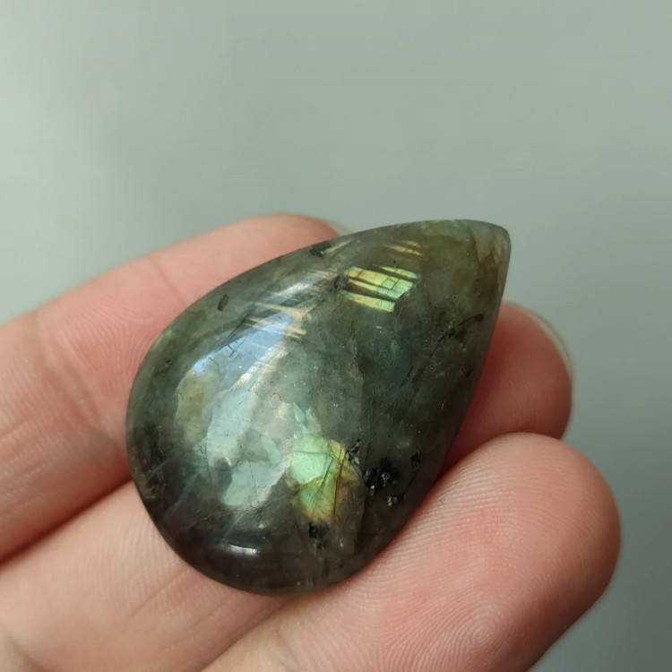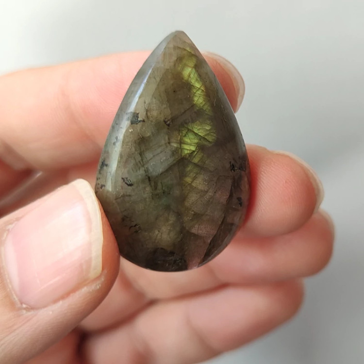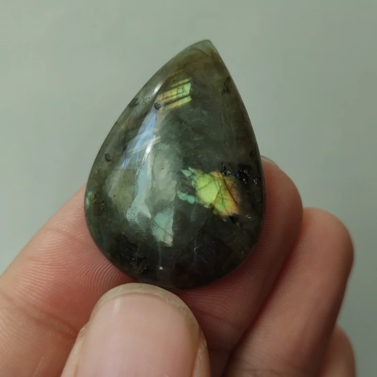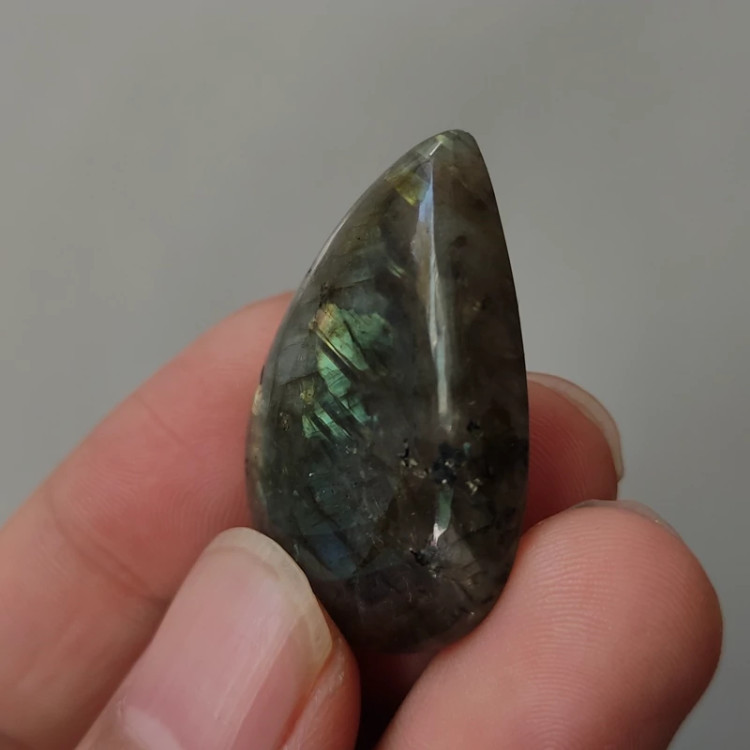 نگین سنگ لابرادوریت طبیعی تراش قطره ای ( اشکی)سایز متوسط با قیمت استثنایی مناسب گردنبند انرژی درمانی تعادل روحیه کد BM21