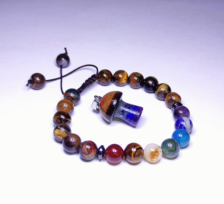 » مهرههای ۸ میلیمتری چشم ببر و ۷ سنگ چاکرا (هر رنگ نماینده یک چاکرا)