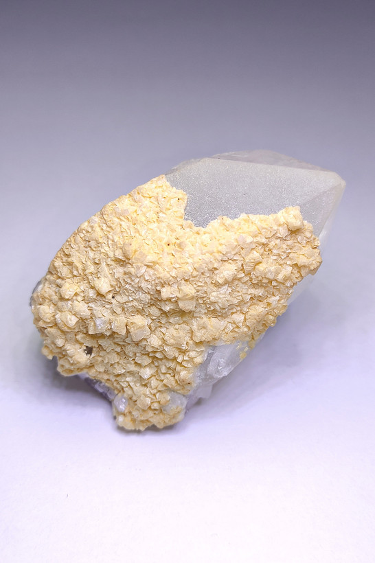 این منشور طبیعی کوارتز با رورشدی از دولومیت زرد و ریزکریستالهای برجسته، ترکیبی کمنظیر از انرژیهای زمینی را ارائه میدهد.