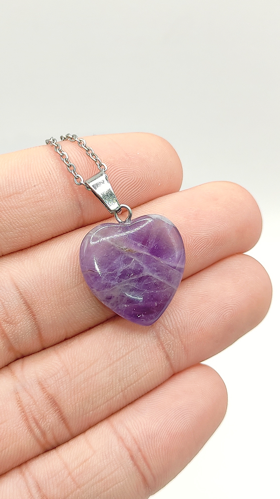♦️این گردنبند از یک کریستال تراشخورده آمیتیست به شکل قلب (سایز ۲ سانت) ساخته شده..