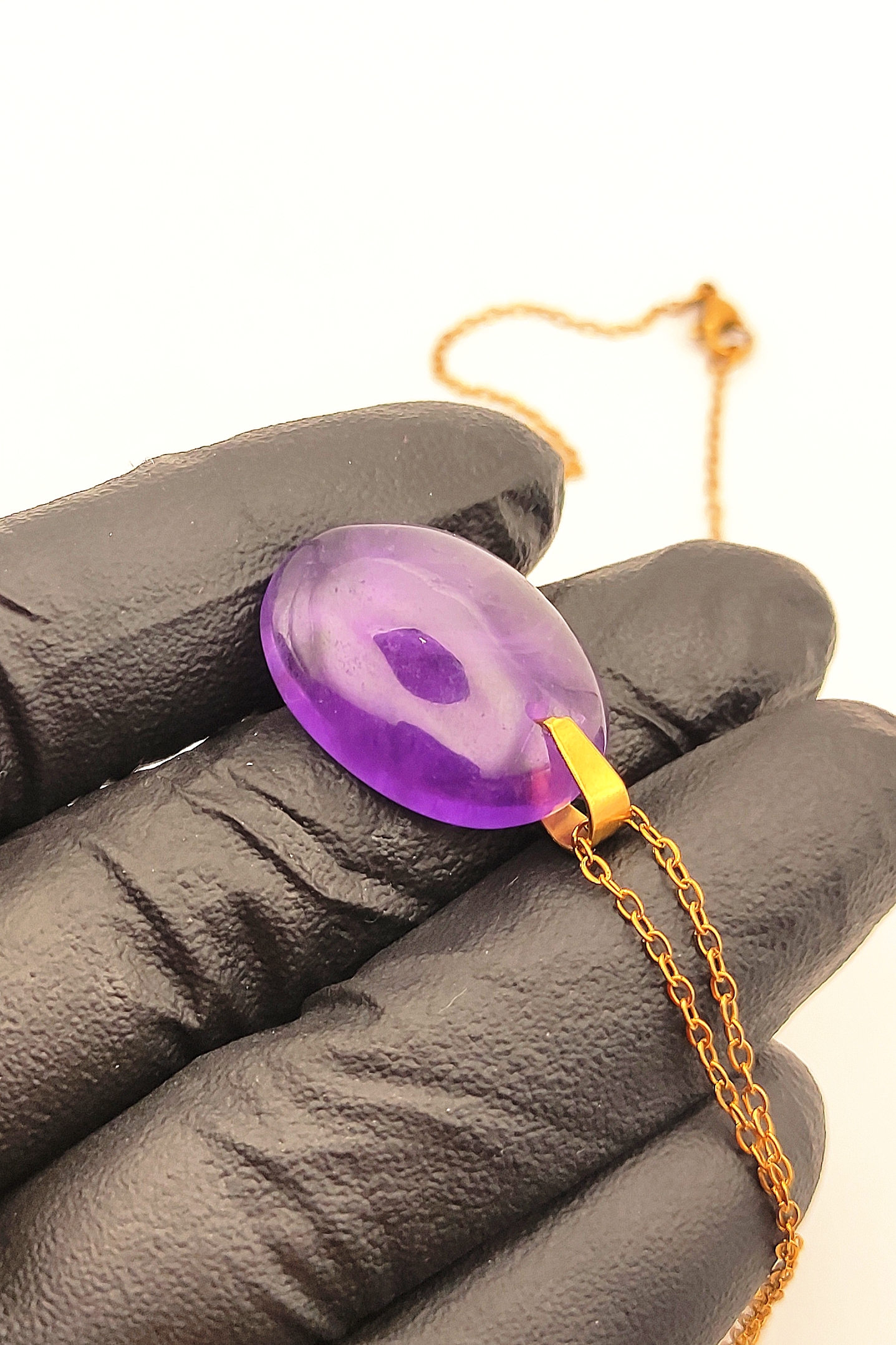 🔰گردنبند آمیتیست برزیلی » شفاف با رنگ زنده طبیعی 💎✨