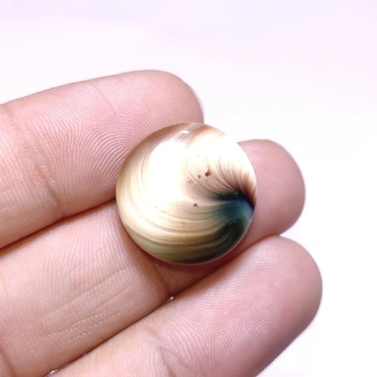 👈🏼این صدف چرخان منحصر به فرد در واقع درب محافظ دهانه حلزون توربان است که در پایان زندگی طبیعی حلزون جدا می شود.